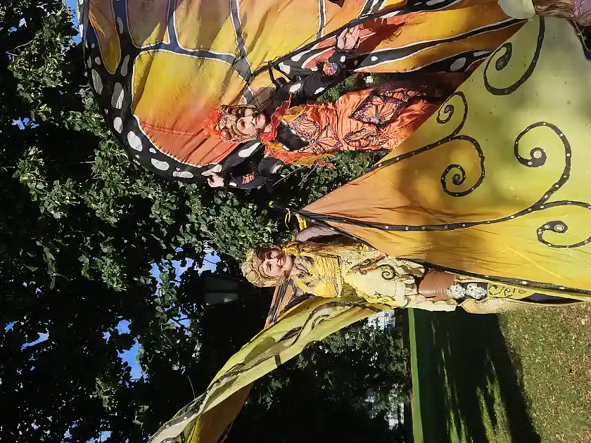 Für Riga präsentierte sich Stelzen-Art mit seinen Schmetterlingselfen als "märchenhaft geflügelte Kulturbotschafterinnen Bremens". Bei Sonnenschein erfreuten sich viele Geburtstagsbesucher:innen an und mit dem Schmetterlingselfen. Beim Wandeln durch den Park direkt am Stadtzentrum waren sie ein beliebtes Fotomotiv.