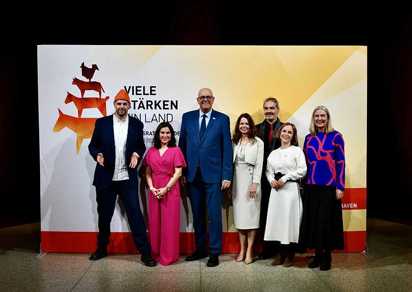 Im Anschluss gab es die Gelegenheit, sich bei einem Glas Wein des Bremer Ratskellers über die vielfältige Kulturlandschaft Bremens auszutauschen und den Beginn der Bremer Bundesratspräsidentschaft zu feiern. Durch den Abend führte Moderatorin Burcu Arslan, für die musikalische Umrahmung sorgte DJ Smiles aus Bremen.