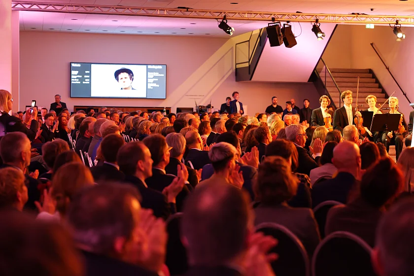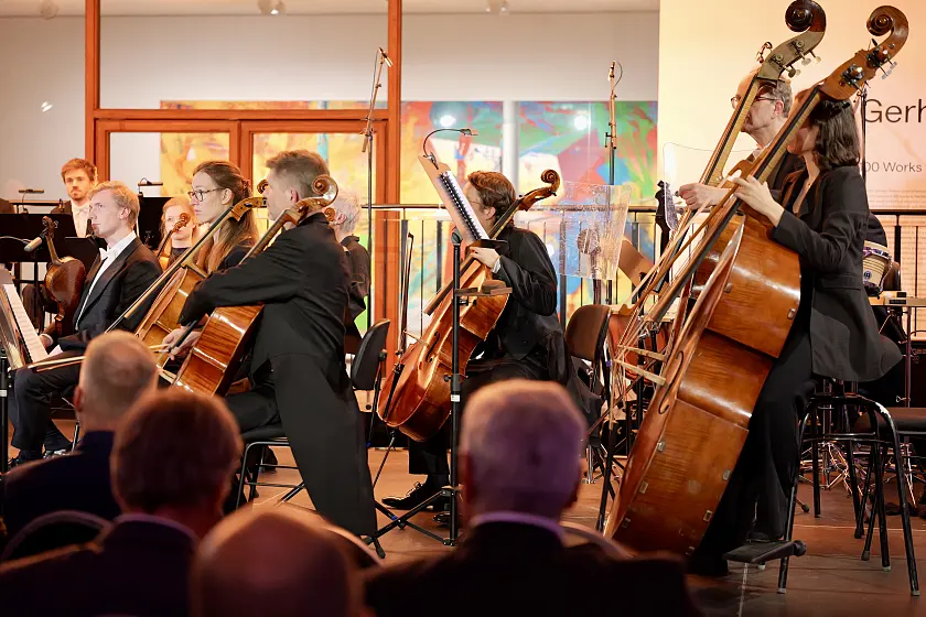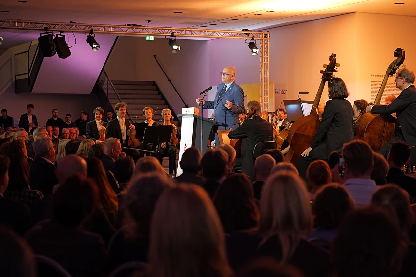 Zuvor hatte Prof. Dr. Marion Ackermann als Präsidentin der Stiftung Preußischer Kulturbesitz, zu der auch die Neue Nationalgalerie gehört, ihrer Freude Ausdruck verliehen den Ort für diese besondere Veranstaltung zur Verfügung zu stellen. Der Abend sei somit sinnbildlich für Kooperationen von Ländern und Stiftung, die gemeinschaftlich von Bund und Ländern getragen wird.
