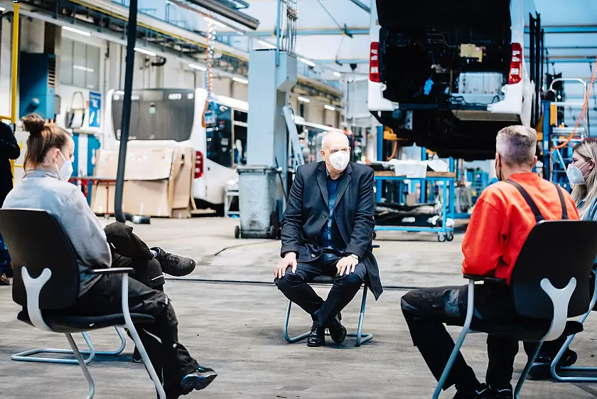 Den Rahmen des Gespräches bildeten dabei Zitate aus den Besuchen Bovenschultes in den vergangenen zwei Wochen bei etlichen Einrichtungen der "Kritischen Infrastruktur". Er war etwa in Einzelhandelsgeschäften, im Hafen, im Krankenhaus, bei Polizei und Ordnungsamt, bei der BSAG und der Müllentsorgung, aber auch in einer Apotheke und bei der Feuerwehr. Von seinen dortigen Gesprächspartnerinnen und -partnern wurden zentrale Aussagen eingespielt und gaben den Faden des Gespräches vor. Diese Begegnungen seien ihm wichtig gewesen, betonte Bovenschulte. Sie hätten noch einmal verdeutlicht, wer die Hauptträger der Last durch die Pandemie sind.