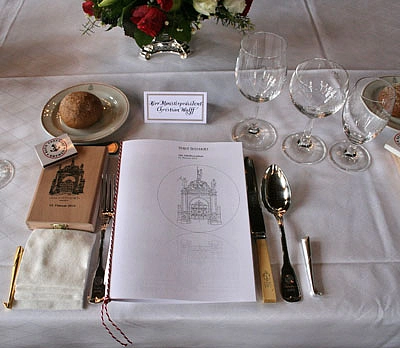 Anlässlich der Schaffermahlzeit trug sich der niedersächsische Ministerpräsident auch in das Goldene Buch Bremens ein. Anschließend führte Bürgermeister Jens Böhrnsen mit Christian Wulff und Dieter Zetsche, Vorstandsvorsitzender der Daimler AG, ein kurzes Gespräch in seinem Amtszimmer.