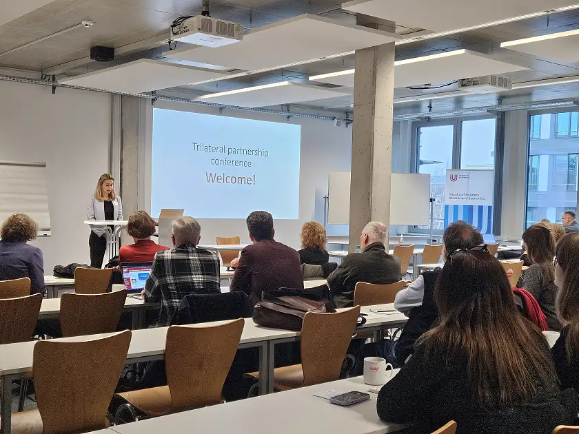 Am 4. Dezember 2024 fand das Trilaterale Forum Odesa-Gdańsk-Bremen "Die Ukraine auf dem Weg in die EU - Chancen und Herausforderungen für eine trilaterale Partnerschaft" mit Teilnehmenden aus Odesa, Danzig und Bremen an der Universität Bremen statt.